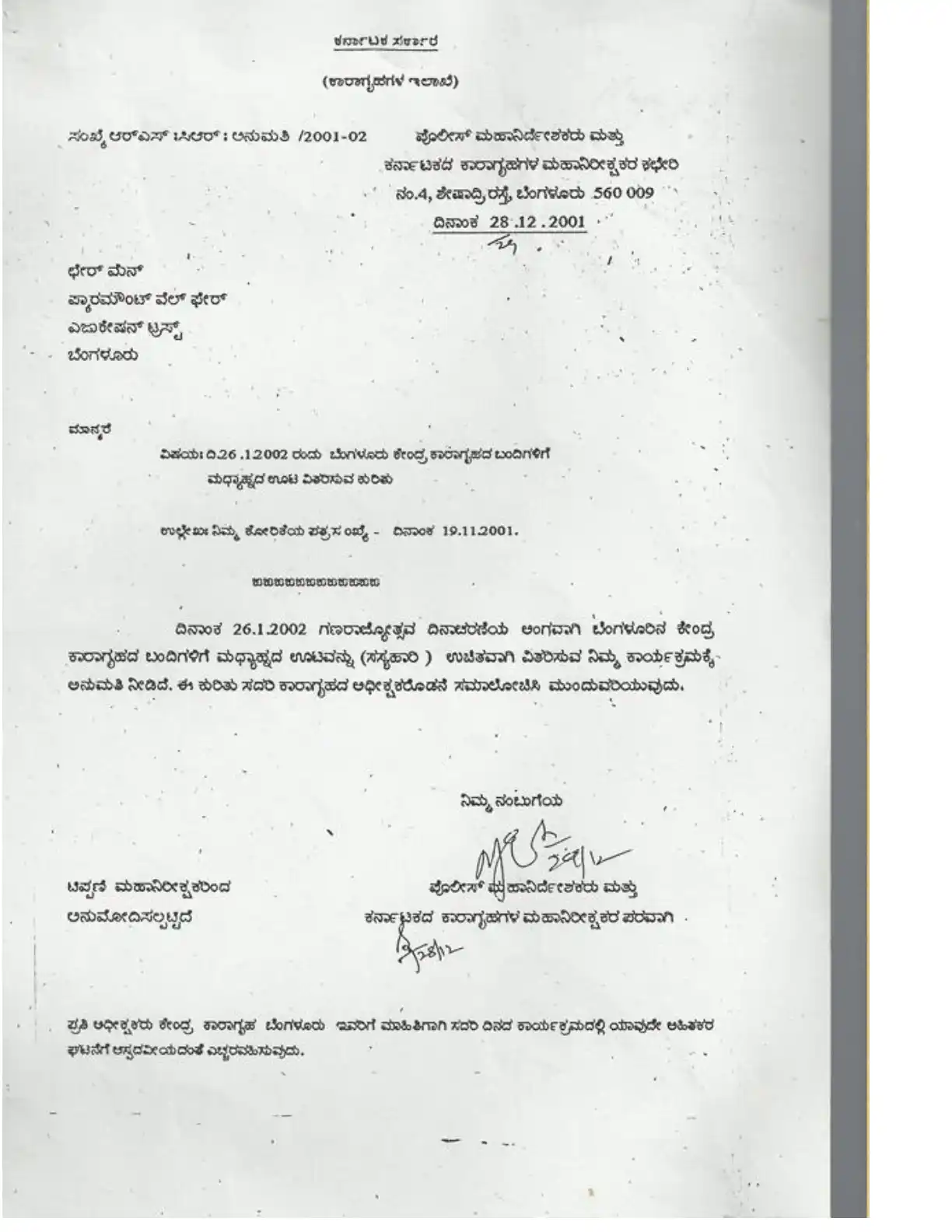 Central Jail programme – january 28, 2002