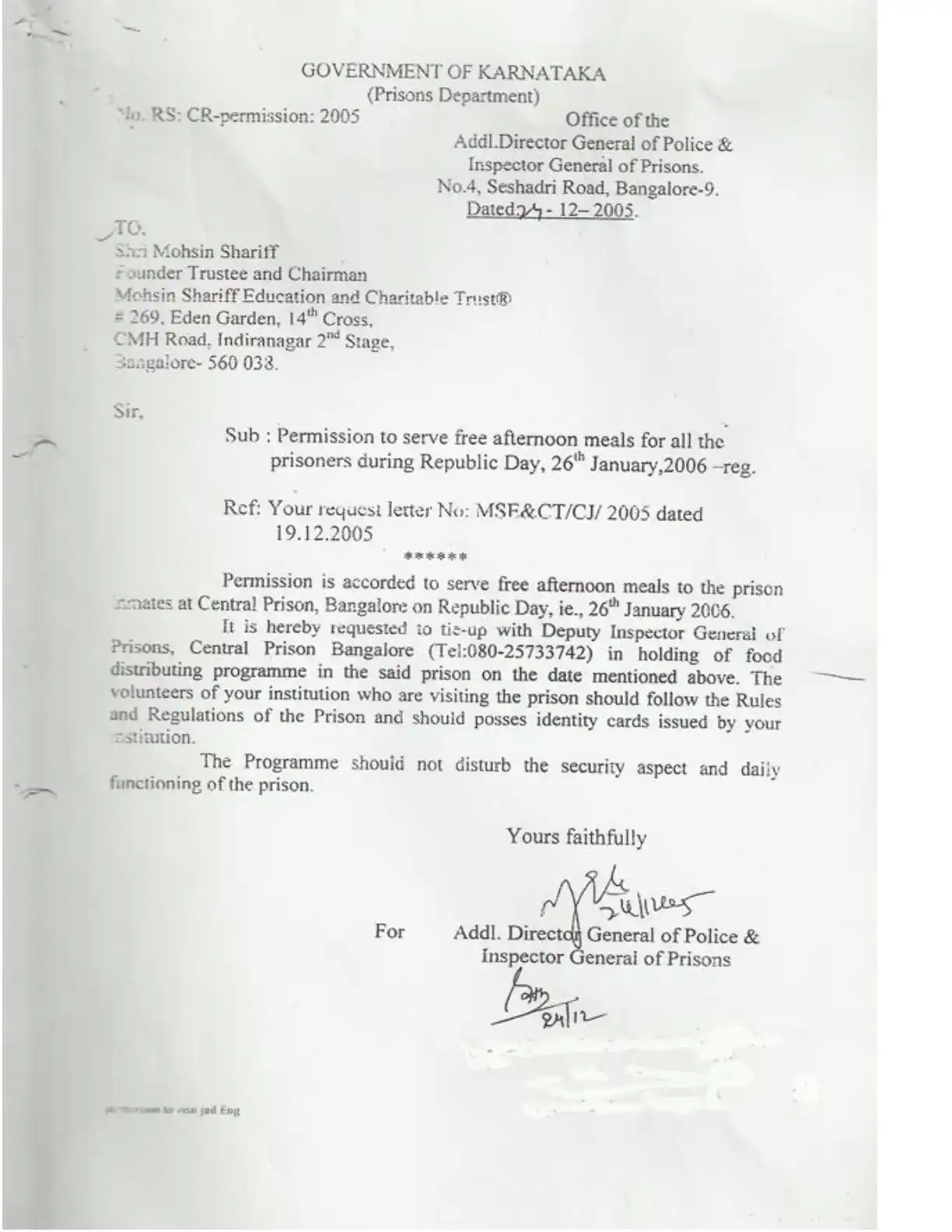 Central Jail programme – january 30, 2006
