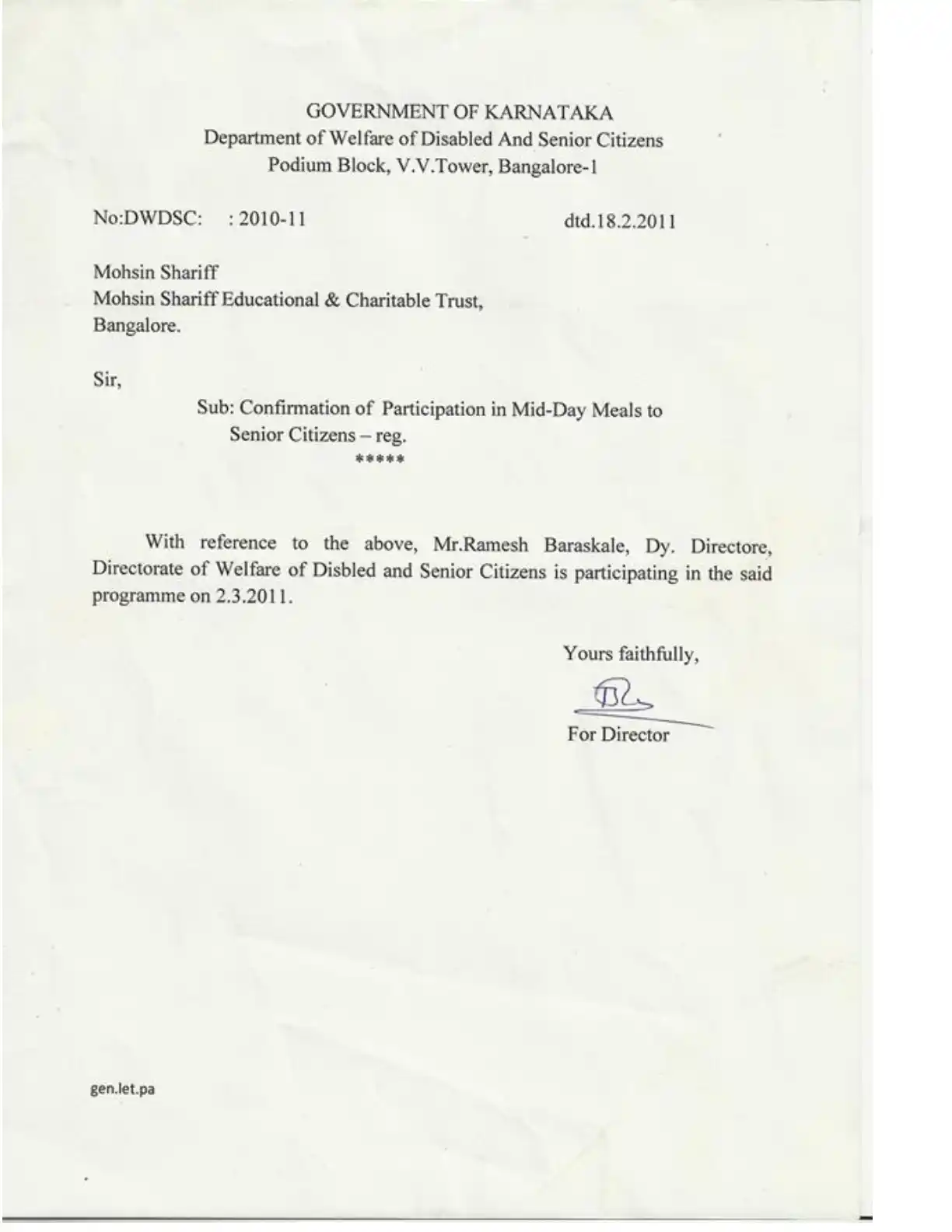 Daily Hot Mid-Day Meals to Senior Citizens